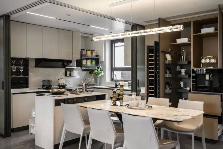 结合艺术玻璃移门,在提升空间灵动性的同时,也激发出餐厨空间生活的多样性。