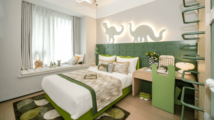 ③地面二层,约4.05米南向面宽酒店式奢阔套卧,打造集起居、卫浴、观景等功能的生活空间,南北次卧均可做儿童房,满足二胎时代需求,亦或北向房间做书房,靠窗观湖,楼上楼下互不相扰。
