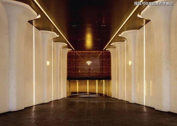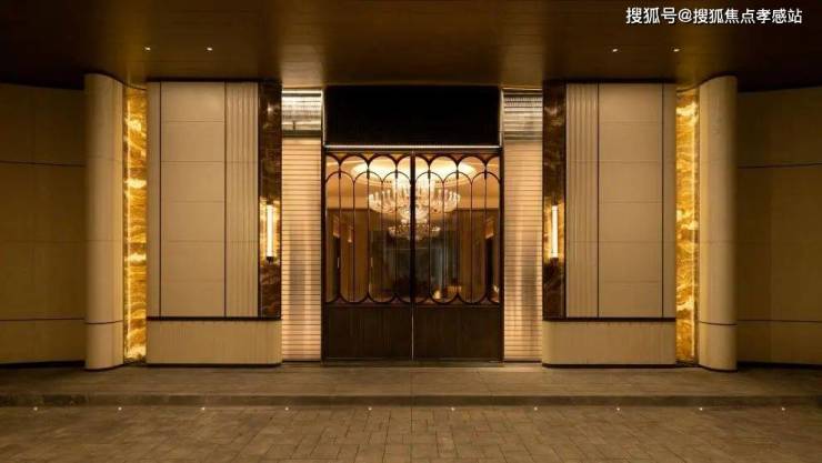 6、社区含“奢材”量很高。门庭延街的外立面,以精工定制弧形米色石材为主调,镶嵌典藏级老虎玉大理石,点缀古铜色现代海派艺术感灯器,整体呈现出百年海派的贵雅气质。