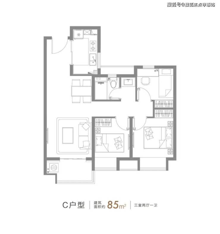 「光明星城」售楼处电话:400-885-5420✨✨建面约85㎡的3房2厅1卫,三开间朝南+整体动静分离的设计,都保证了这个户型的居住舒适度。整个户型全明设计,户型方正,南北通透,卫生间干湿分离,光明对于产品细节的把控力可见一斑。