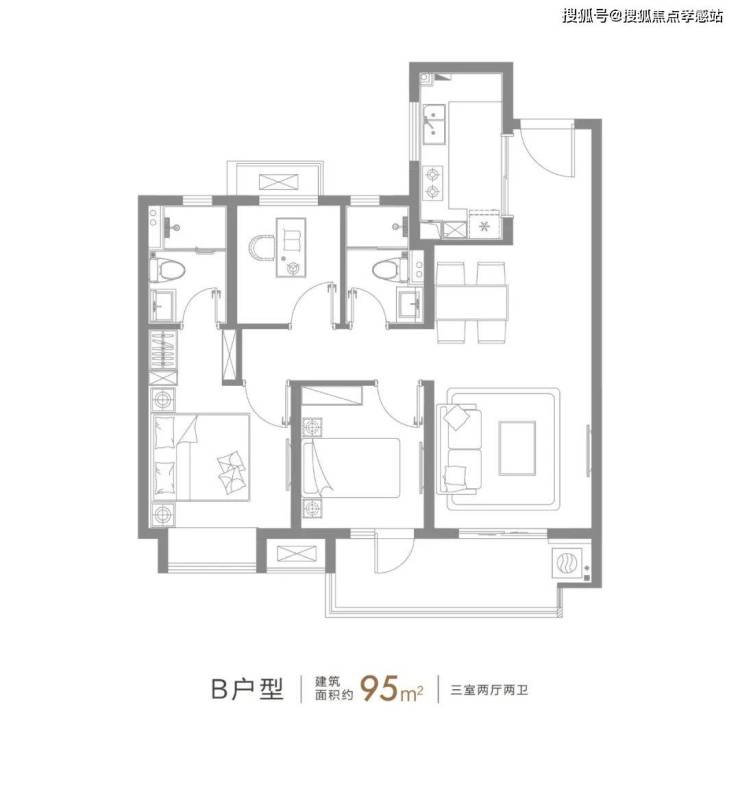 「光明星城」售楼处电话:400-885-5420✨✨建面约95㎡的3房2厅2卫户型,可以说是刚需置业一步到位的户型,从二人世界到二胎家庭的全生命周期需求都能满足。