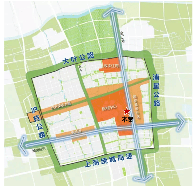 田字绿廊:S4高速公路、东方美谷大道与新城四至围合而成