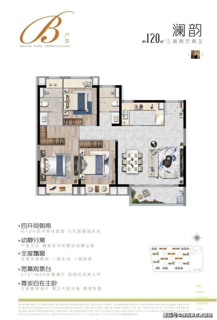 主力户型:建面约 95-145㎡的三至四房,目前主推建面约 100-122㎡的三房户型。