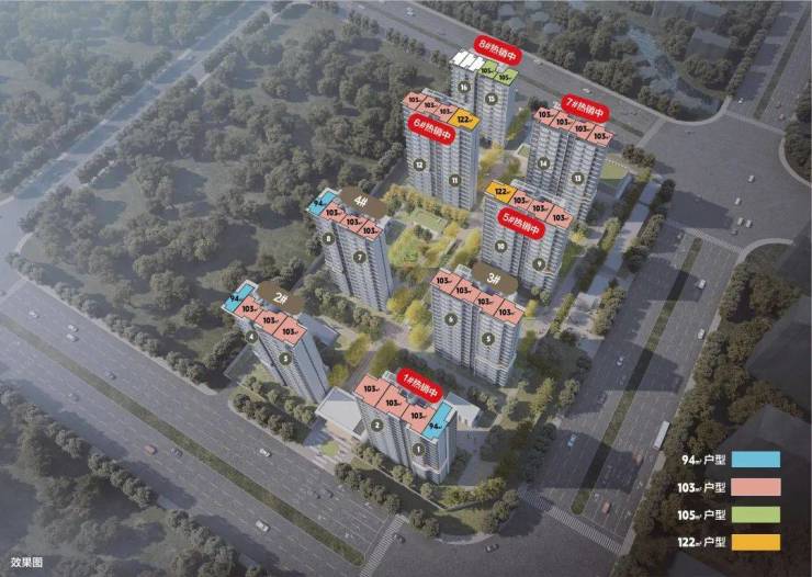 本次首开1、5、6、7、8幢楼,鸟瞰图如下: