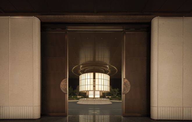 外立面借鉴帝国大厦顶部收缩的垂直美学、立面构成以及沙逊大厦强化基座的稳定感,在设计上实现了经典与现代的融合。通过硬朗直线呼应柔和曲线勾勒,辅以温润石材与古铜色金属线条融合,打造东西方美学共融的艺术藏品。