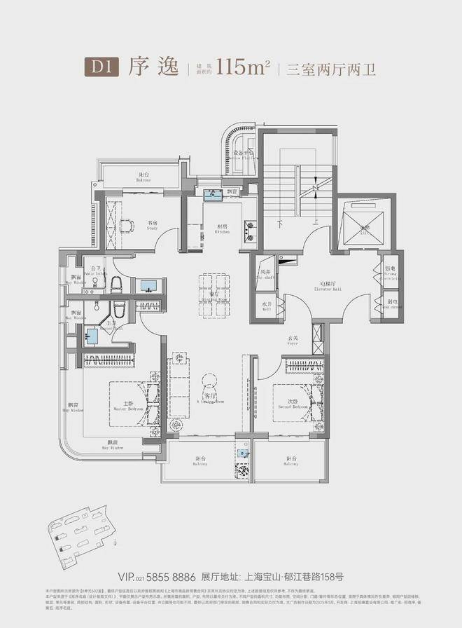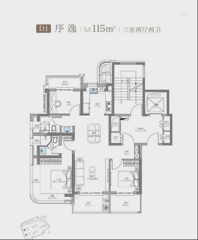 750万级115㎡鲲鹏阁三房户型