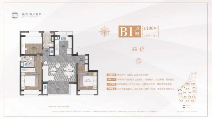 建面约100㎡三房,依旧是经典的飞机户型,大横厅设计,享受更阔绰的生活尺度,电梯对开门设计,配置独立电梯厅,拥有更多私享公共空间。🥝森兰海天名筑售楼处24小时电话☎☎:400-8787-740【售楼处已认证】