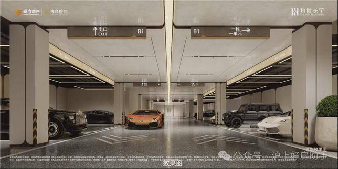 车行道地面采用水磨石、主体车道全吊顶设计,每个车位上方还都有LED环绕灯吊顶,营造仪式感归家氛围。