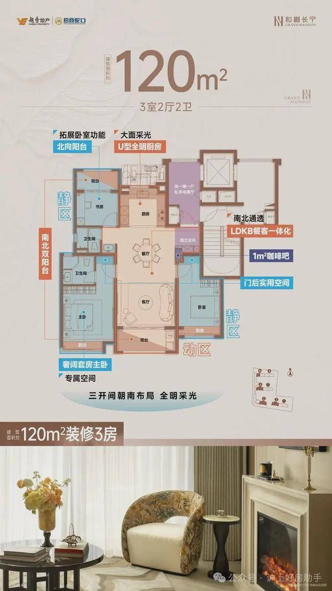 和樾长宁售楼处电话:400-8787-740 空间尺度更是“够舒展”:三开间朝南,南向面宽约9.8米,阳光能铺满室内;动区通过LDKB一体化设计,餐客厅、和樾长宁售楼处电话:400-8787-740厨房与阳台连成近40㎡的超级空间——朋友来聚餐,十几个人坐得下;孩子在客厅玩玩具,家长在厨房做饭也能随时照看,不用来回跑。三个卧室都能放下1.8米床+衣柜,没有“小房间凑数”的情况。和樾长宁售楼处电话:400-8787-740