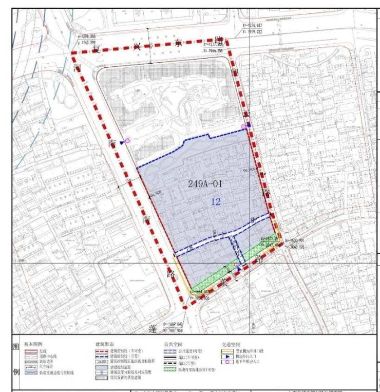 沿蓬莱路设置地块内部绿化,总面积不小于1000平方米,其边界为可变控制,宽度约为10米。