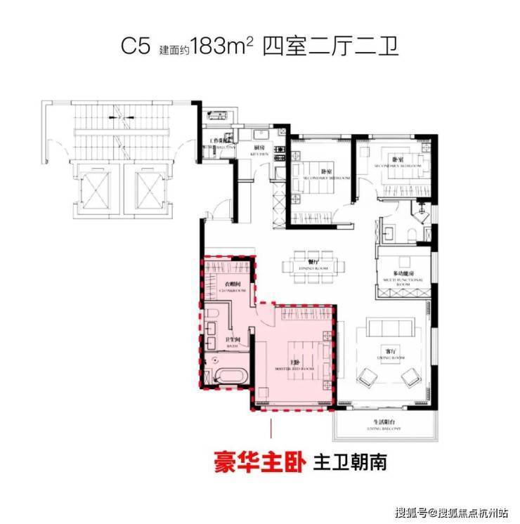 而且你仔细看,2个套房分列客厅左右,并且配置极为相似。