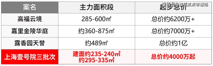 而本次,上海壹号院推出了社区内最后的60套建面约235-240㎡小户型,总价或许仅约4000万左右就能上车。