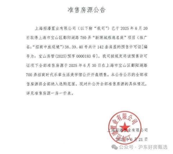 2024年7月9日,招商蛇口&中旅投资拿下宝山顾村7号线潘广路站旁地块。目前,项目定名为招商中旅·观境,主力户型为建面约110㎡3房和约144㎡4房。