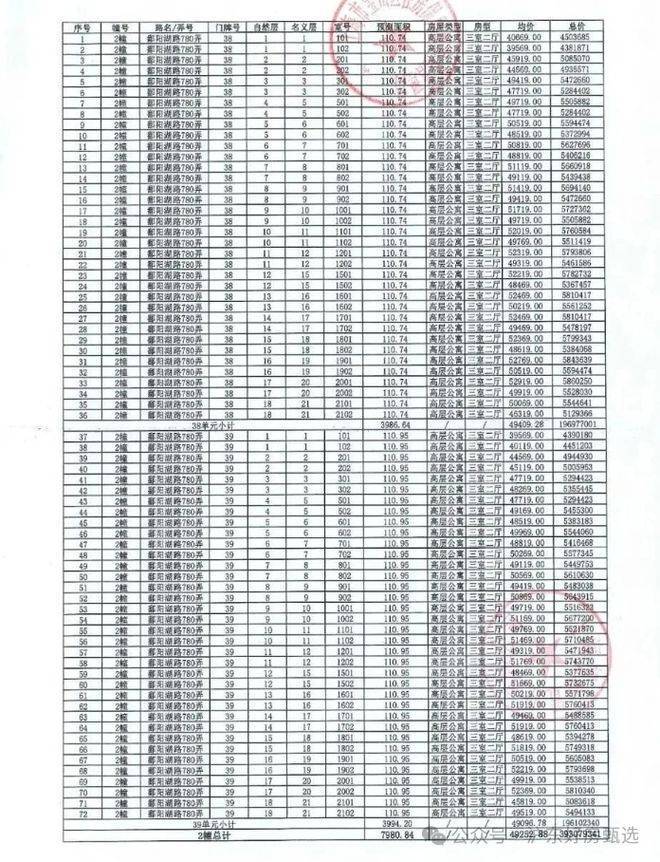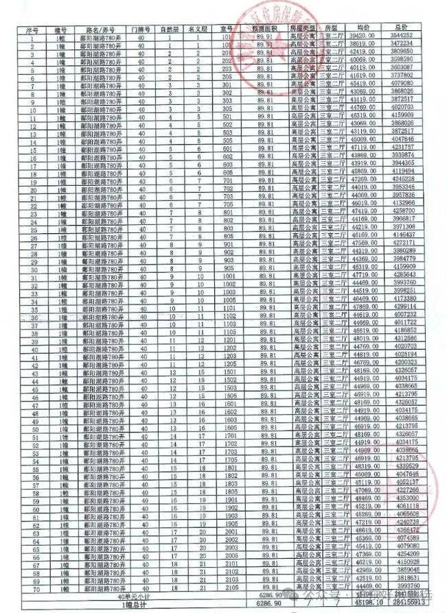 附一房一价表: