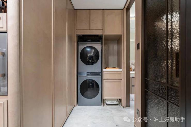 收纳升级:长约3.4米的整墙收纳柜+玄关收纳柜、家政柜配置单独洗涤盆等升级收纳配置!