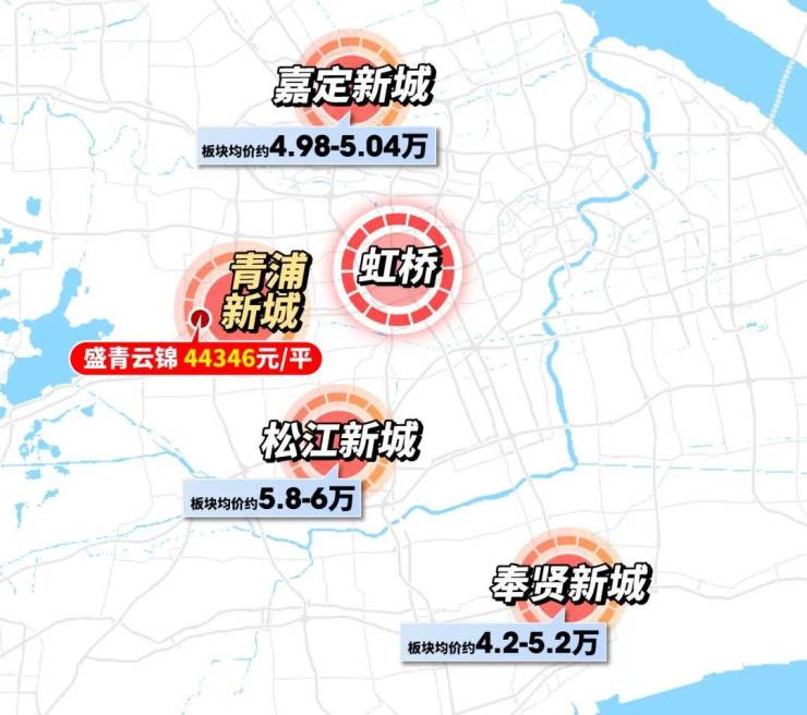 而青浦新城,背靠大虹桥+长三角一体化示范区,价格仍在4字头,性价比独树一帜。