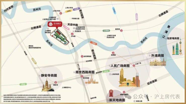 直线距离约3公里范围内拥有静安大悦城、上海苏河湾万象天地等配套,直线距离约4公里内范围内覆盖三大黄金商圈——人民广场、南京西路及静安寺商圈,尽享繁华都市生活。