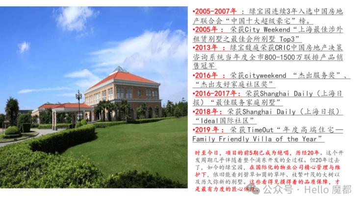 绿宝园别墅位于南汇康桥开发区,奠基开工于1999年,占地近40万平方米,迄今共推出5期产品及“绿宝.馥庭”,经过多年的开发已成为上海成熟高档的别墅社区之一,曾连续三年被评为“亚洲十大豪宅”,其多年来以纯正的美式规划,美式物管等西方的概念和执行。项目从规划之初即定位于打造具有北美风格、以外籍客户为主的涉外高档社区,在知名规划与设计团队的主导下,致力于高标准的设计、高品质的建筑、经验丰富的管理团队为住户提供全新的生活标准。