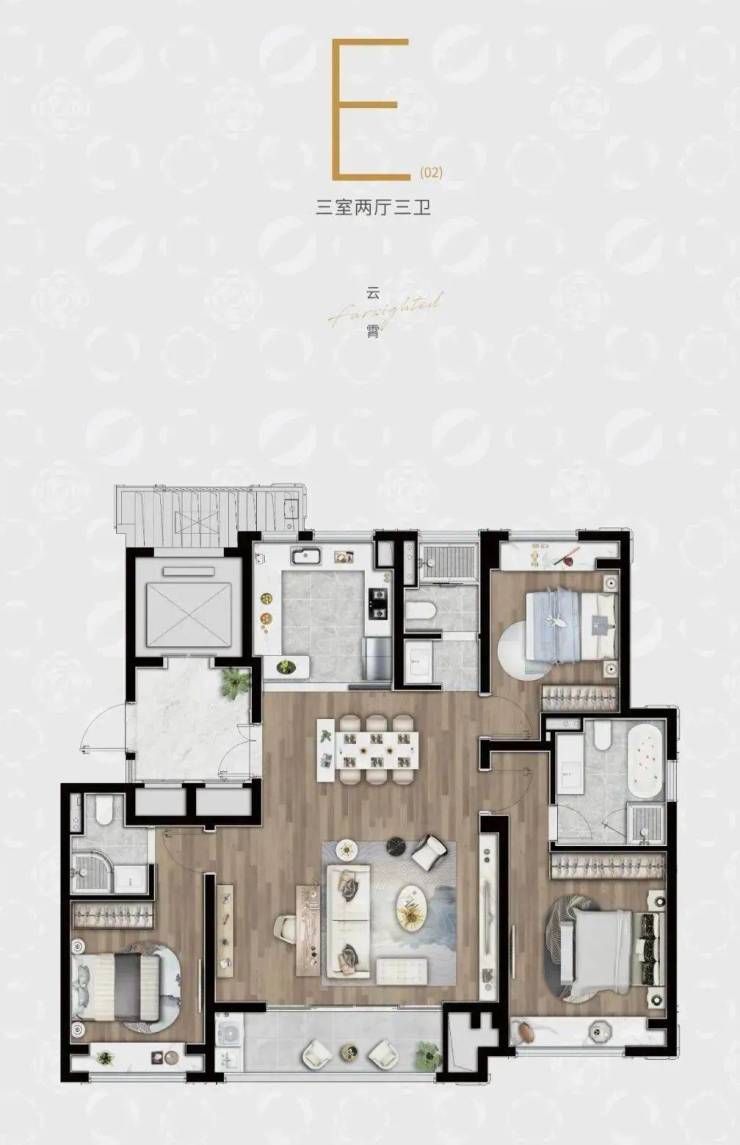 约140㎡高层三房两厅三卫(毛坯)约168㎡高层四房两厅三卫(毛坯)