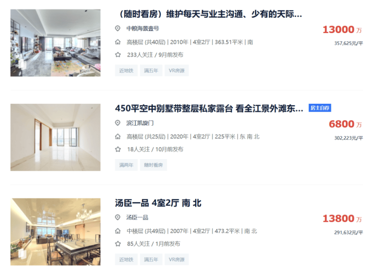 对比过贝壳上国内外同级别滨江/海景顶豪的价格你就会发现,上海作为全球顶尖城市,一线江景顶豪的价值本来就该和国际接轨。
