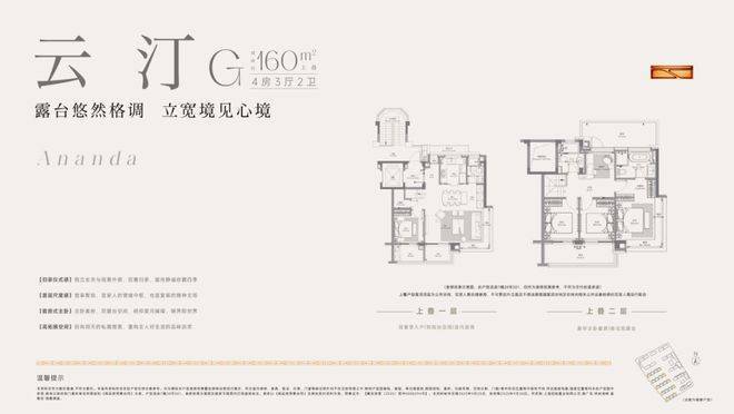 建面约160m上叠,4房2厅3卫,共计约38套,上叠的户型布局其本与下叠一致,附赠南北露台,边套户型的客厅以及主卧同样也是270°飘窗!