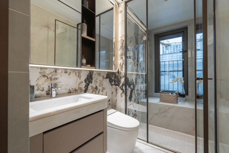 卫生间也是重金打造,无论大小户型,主卧卫生间均增加科勒美妆龙头和美妆冰箱;
