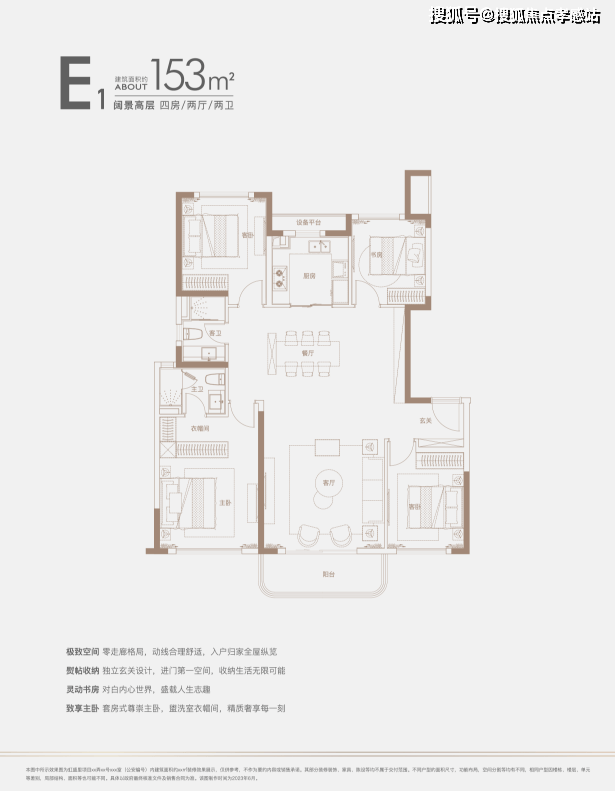 建面约140㎡四房:三开间朝南户型,南北通透,采光条件优质,客厅明亮宽敞,彰显大气布局。