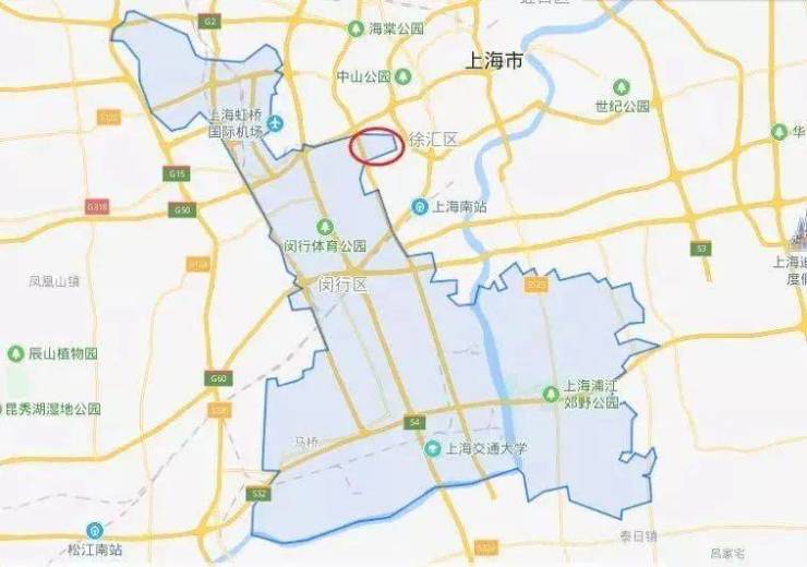是闵行、长宁、徐汇三区交界处,一脚油门就能进入市区。