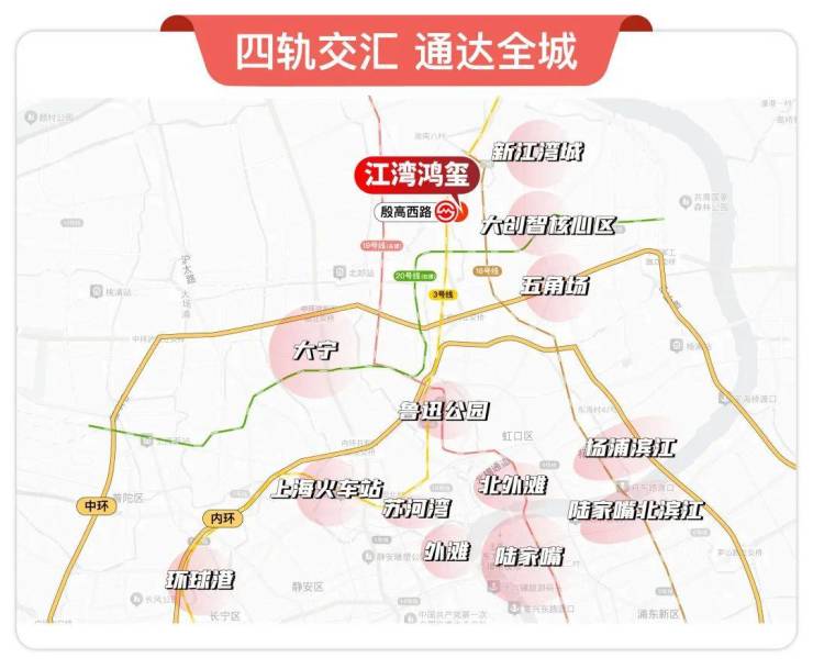 项目与五角场商业中心、大创智核心区、新江湾城相距不过3公里,一脚油门即可到达。