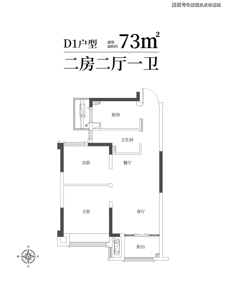建筑面积约73㎡舒适两房一卫,年轻家庭的向往