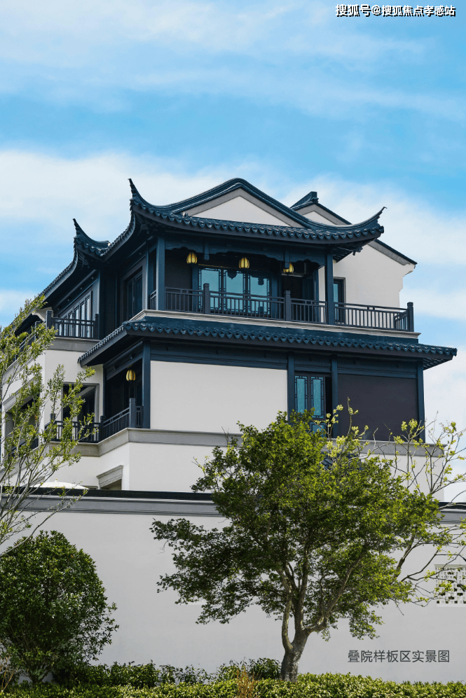 产品方面,叠加别墅立面一贯白墙黛瓦,水墨画风格。浓缩了苏州园林、海派建筑的精髓,塑造中国花园式美好范本。