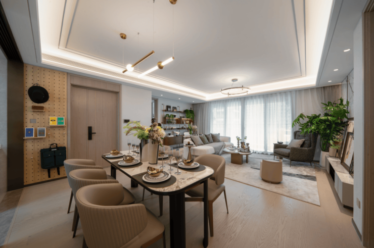 客餐一体化设计,让空间更加开阔通透,无论是家庭聚餐还是朋友聚会,都能轻松容纳,共享欢笑与宁静。