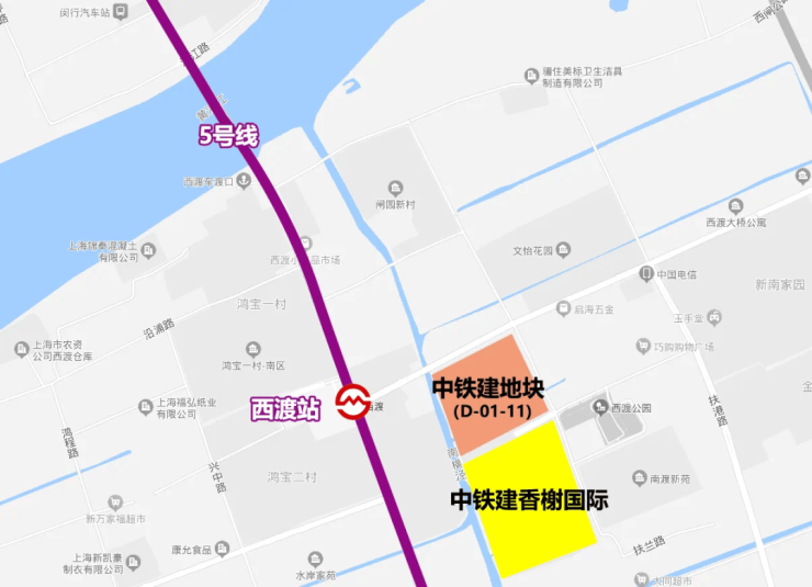 项目东至扶拦路,南至D-01-13(中铁建香榭国际),西至南横泾,北至西闸公路。距离5号线西渡站仅约250米(百度地图测距,仅供参考),未来将是地铁房。