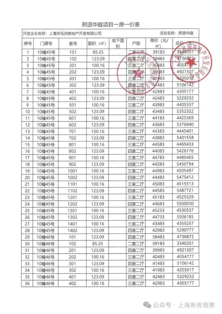 一房一价表如下: