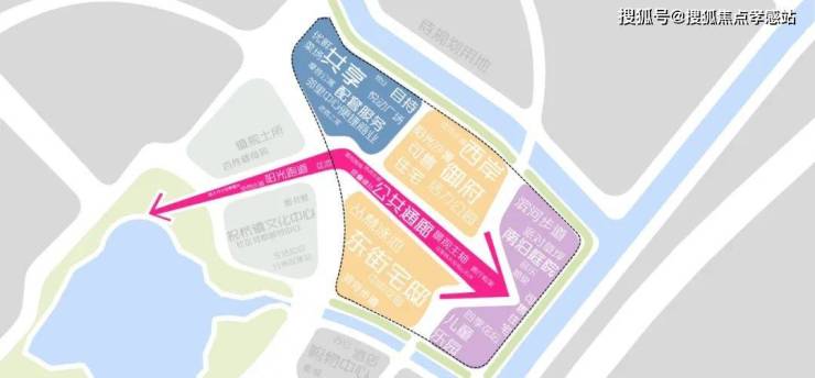 据悉社区由自持住宅、可售住宅、社区配套三大功能组合而成,北区为公区自持配套区,中区为住宅社区,南区为住宅社区及配套。