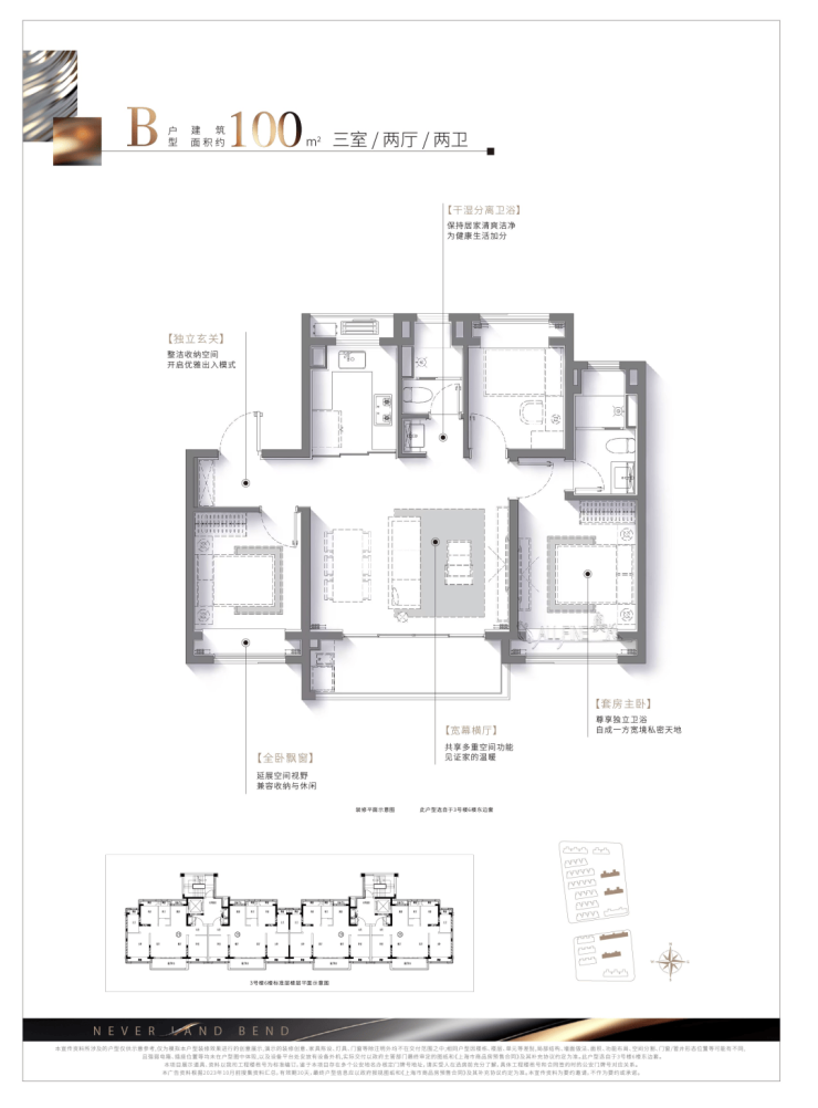 此外,干湿分离卫浴设计+南向套房主卧+全卧飘窗设计,生活舒适度拉满。