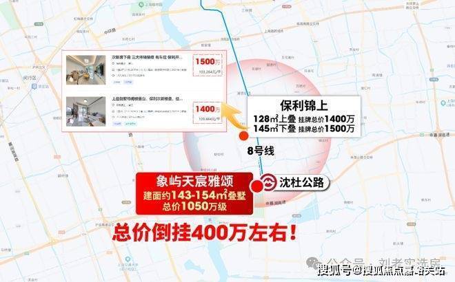 据链家网显示,项目旁边类似的轨交墅保利锦上项目,二手的上叠要1400万,下叠要1500万!