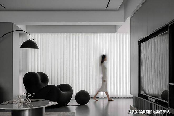 设计中贯穿的开放式布局,抛却了传统封闭的束缚,使各功能区自然而然地相互融合。黑色的异形沙发如一曲动感的旋律,注入了空间活力,其多处凸起的设计,更是贴合身体曲线,为居者带来舒适无比的体验。