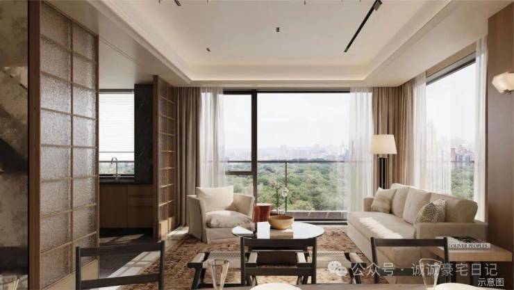 严选豪宅奢级用材的大面积LOW-E玻璃+铝板为主,让外立面呈现历久弥新。而且深度考量玻璃材质对空间舒适度的影响,以大尺寸玻璃+超高窗墙比,革命性地创新实施了「墙体消失术」,大部分墙体都被玻璃+铝板替代或包裹,「含玻量」高,宛如“垂直而立的镜面”,从视觉效果看碾压过往产品,带来地标豪宅的全面屏效果,提前锁定了下一代豪宅身位与板块价值的制高点。
