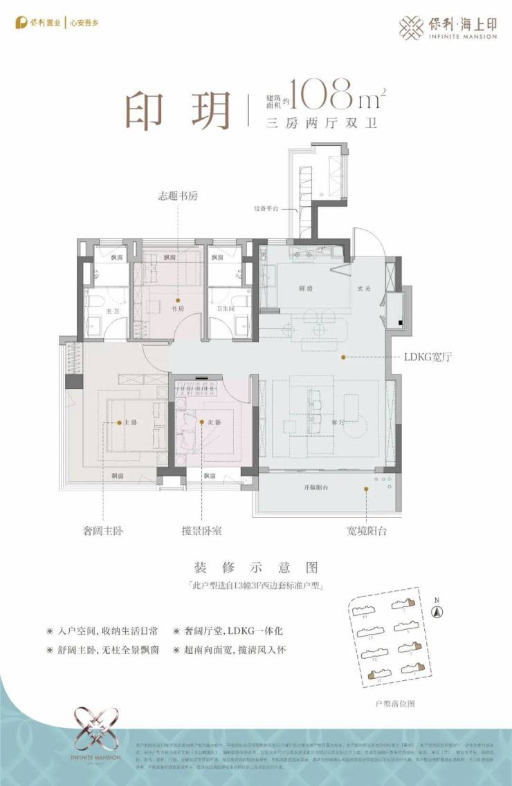 ⤴️ 保利·海上印售楼处热线☎️☎️:400-9966-940✨✽✽✽✽ 建面约108㎡ 3房2厅2卫▼