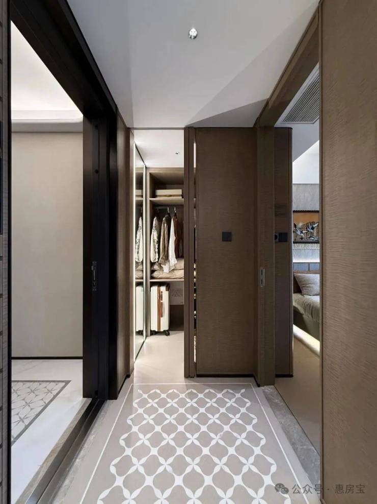 入户设置800库空间,它和传统玄关柜的区别在于:从“平面收纳”升级为“立体仓库”,储物功能更强大!约5米面宽横厅,多出来一个灵动空间,可根据个人需求定制为开放式书房、茶室等;岩板+金属饰面电视背景墙同样为交付标准;LDK一体化,餐厅区域可轻松放下6人位餐桌,并预留餐边柜位置;U型厨房,配置方太四件套(油烟机、灶具、洗碗机、蒸烤一体机)、科勒水槽及龙头等,基本所见即所得;同时厨房也附赠飘窗,将飘窗台面与橱柜一体化设计,做为了水槽区域,极大的提高了厨房空间的实用面积!边套户型主卧为270°转角飘窗,并预留两个衣柜空间;北卧为封闭阳台,实际交付时阳台会改造到位,地暖通铺,地板墙纸通铺,吊顶做好,可参考样间效果。综合来看,该户型还是非常不错的,满足改善需求的同时,各空间储物空间充足,完美解决了这一类客群的收纳痛点,作为项目主力户型,关注度很高!
