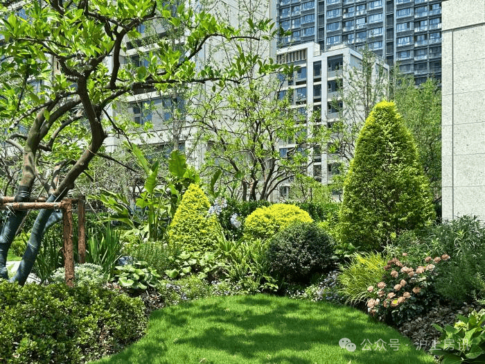 大乔木种植远离南侧窗户,结合草坪保证底层房源有良好视野和采光,同时通过地形设计与植物的有机结合保护业主私密性。