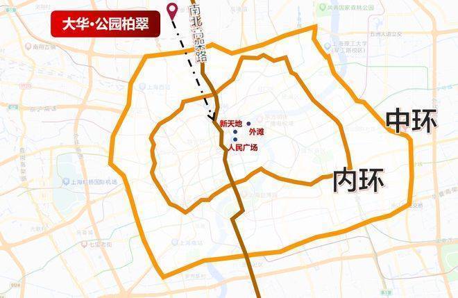 大华·公园柏翠不远处的南北高架,串起了上海核芯最重要的两条纵贯线:中环线和内环线,撑足了“条条大路通城市封面”的气场。