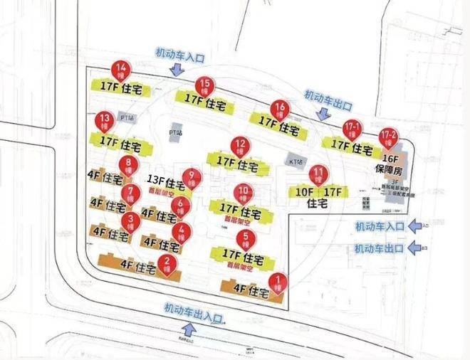 其中1#、2#、3#、4#、6#、7#、8#幢为4层的叠加别墅;11#幢为10层小高层和17层高层、9#幢为13层小高层;其余楼栋均为17层高层。保障房位于小区东北角。