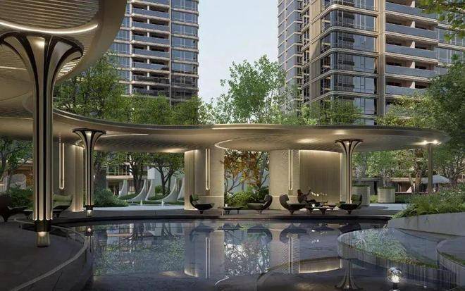 它也采用多见于豪宅新盘的风雨连廊,打造风雨无阻的归家体验的同时。风雨连廊的造型与景观巧妙呼应,别有意趣。