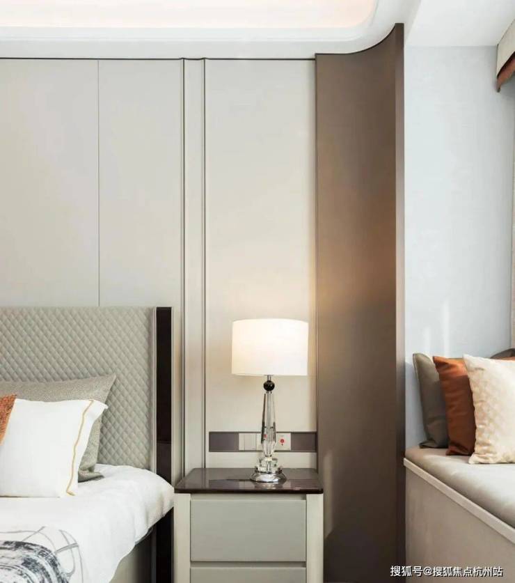 全弧美学:让空间告别“棱角”踏入样板间的第一秒,你会发现这里几乎“看不到一个直角”:墙面转角、吊顶边缘、门套线条,甚至石材台面与柜体边缘,均以流畅圆弧替代生硬直角。