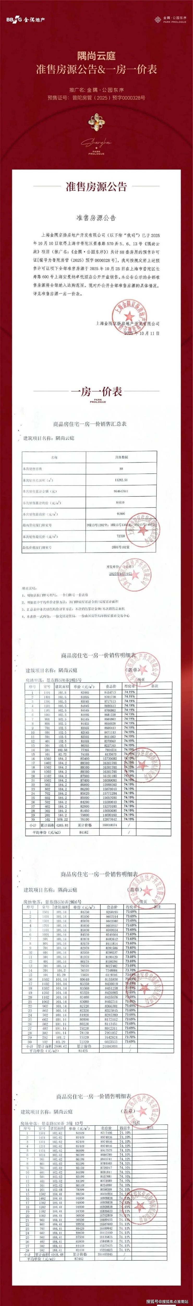 最新消息:一房一价表发布!普陀桃浦「金隅公园东序」正在认购!建面约101-184㎡三房四房,均价84610元/㎡!