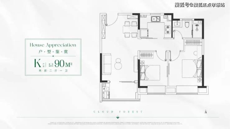 J/K户型 建面约90㎡2房