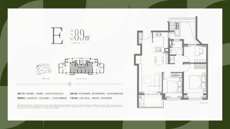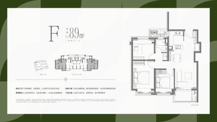 自然功能主义设计:社区内部打造约3万㎡中央园林,规划阳光草坪、生态湿地、亲子乐园等景观节点,四季有景,生态宜居。户型设计上,89-126㎡三房精准适配家庭需求,空间布局合理,采光充足,满足不同家庭结构的居住需求。