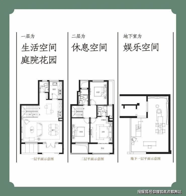 加上地下室,约135㎡观景下叠共有三层空间,其中地下室为娱乐空间,